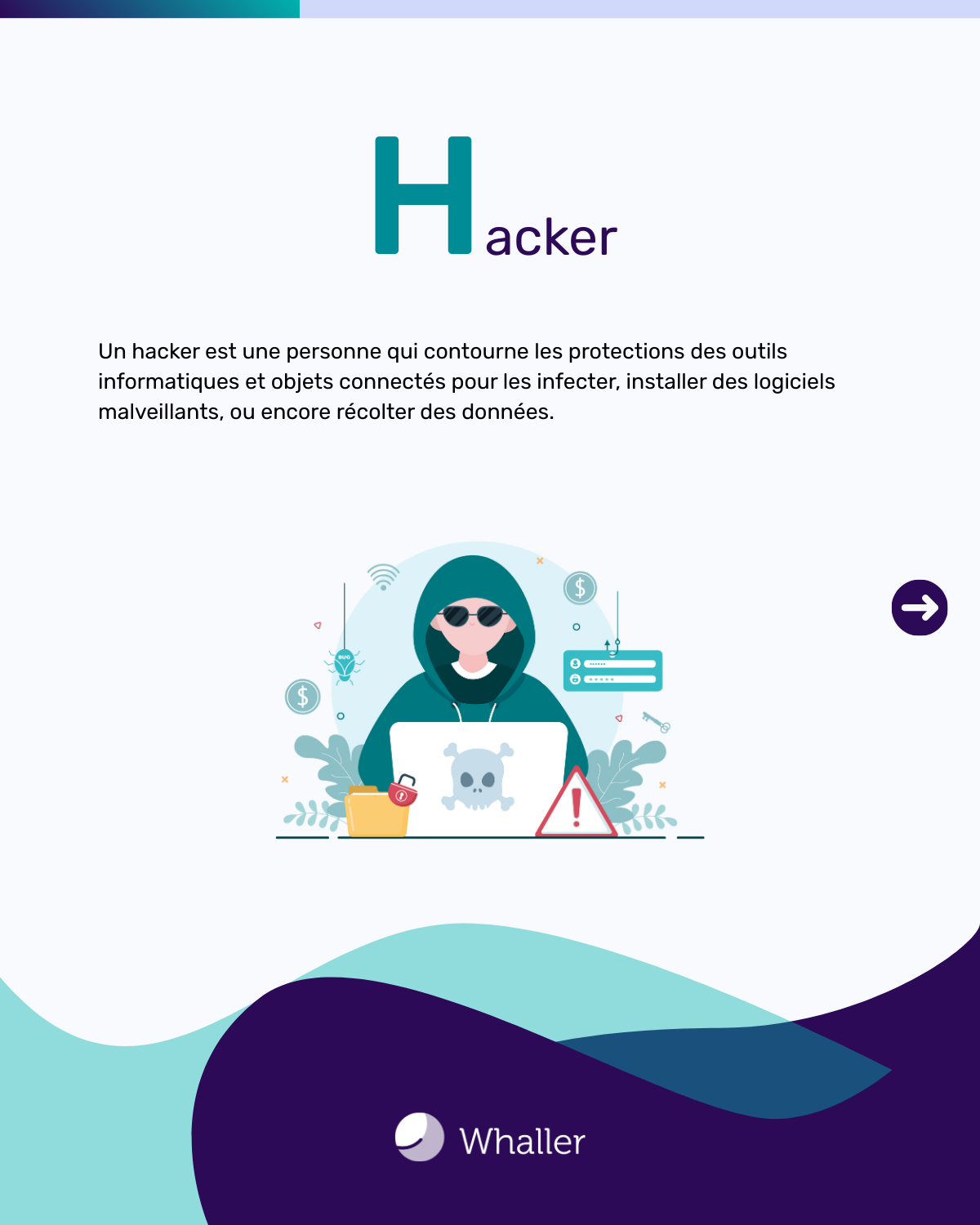 Un hacker est une personne qui contourne les protections des outils informatiques et objets connectés pour les infecter, installer des logiciels malveillants, ou encore récolter des données.