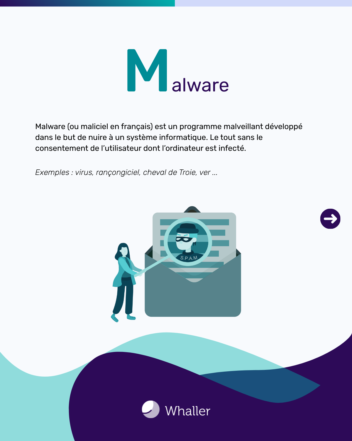 - Virus, soit un morceau de code contagieux qui infecte un logiciel et se propage de fichier en fichier sur un système,