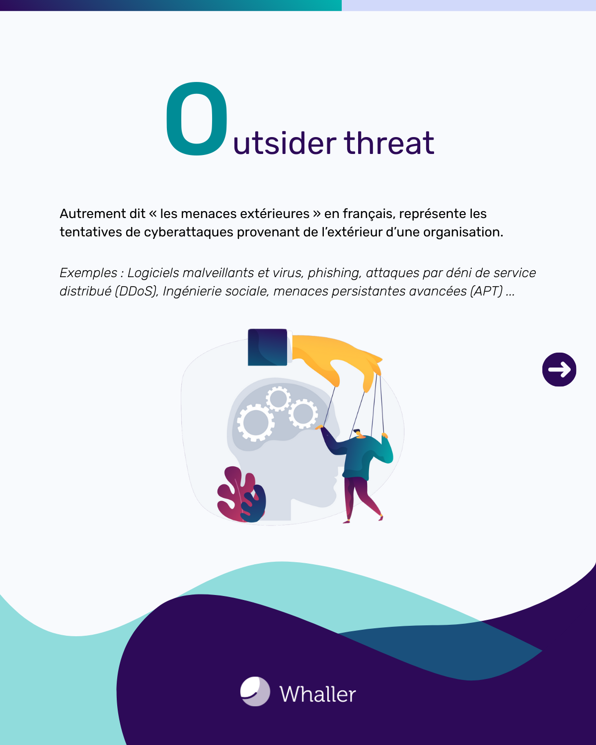 A l’inverse, l’ « Insider threat » représente les menaces internes d’une organisation. Par exemple, l’utilisation d’un mot de passe trop faible par un collaborateur, qui peut permettre à un hacker de compromettre son compte et les données sensibles de l’entreprise.