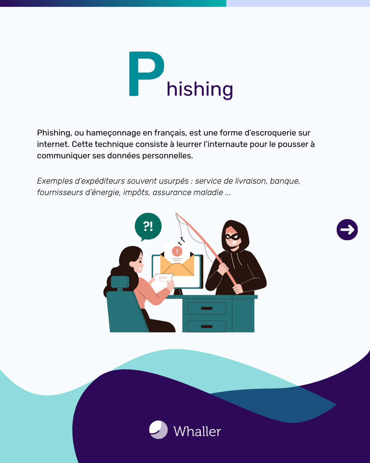 Phishing, ou hameçonnage en français, est une forme d’escroquerie sur Internet. Cette technique consiste à leurrer l’internaute pour le pousser à communiquer ses données personnelles et/ou bancaires. Pour cela, ces derniers se font passer pour un tiers de confiance comme un organisme bancaire, fournisseur d’énergie, site de commerce en ligne… L’escroquerie peut prendre la forme d’un sms, d’un appel téléphonique ou encore d’un email.