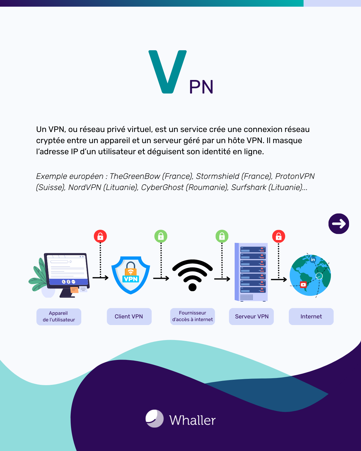 Un VPN, ou réseau privé virtuel, est un service qui crée une connexion réseau cryptée entre un appareil et un serveur géré par un hôte VPN. Les VPN masquent l’adresse IP d’un utilisateur et déguisent son identité en ligne. Les tiers ne peuvent pas voir quels sites web sont visités, ni quelles données sont envoyées ou reçues (mots de passe, informations de paiement, etc.).