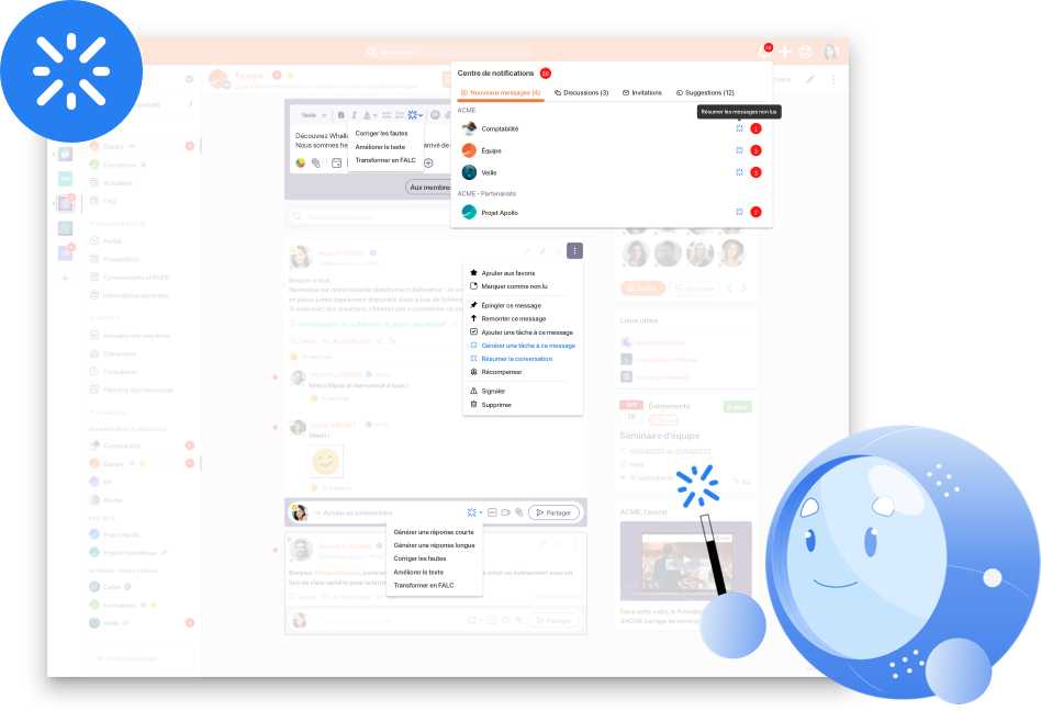 Pour dépasser l’écart perçu entre les générations, il ne suffit pas d’assembler des outils : il faut faciliter leur usage. Whaller le fait à travers des fonctionnalités innovantes et pédagogiques.